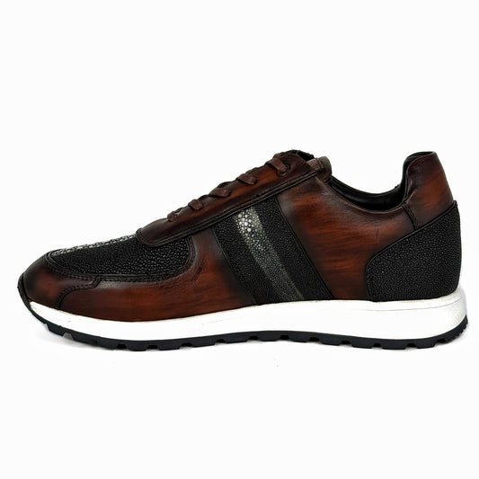 BROWN LEATHER & STINGRAY SNEAKER