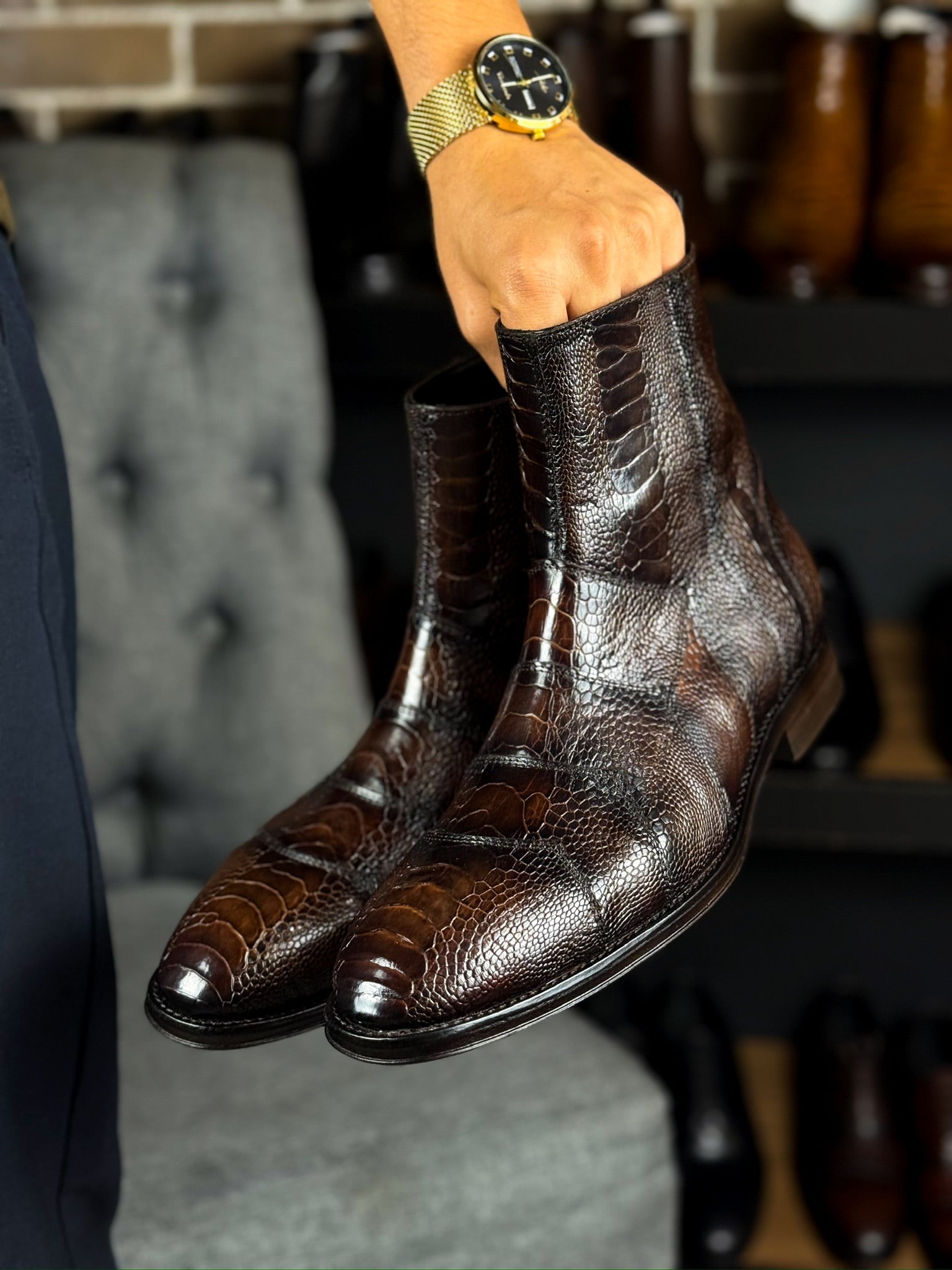 - Piel de pata de avestruz autentica.